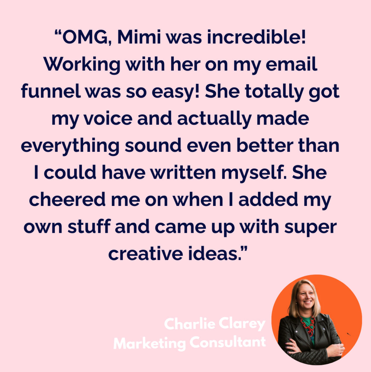 Every email has a goal: nurture, educate, sell. Mimi makes sure your sequence builds momentum and ends with a pitch that lands.🧡 She sounds like YOU